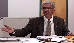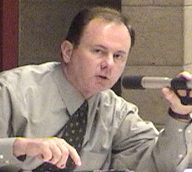 Nevada Consumer Advocate Timothy Hay addresses a packed house at Mendive Middle School in Sparks on Feb. 4. Sierra Pacific CEO Jeff Ceccarelli also attended. Relations have since substantially soured. See the Energy Crisis War Room for blow-by-blow.